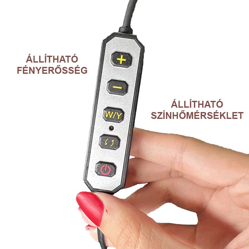 -távirányítóval és a zsinóron lévő gombok segítségével is állítható